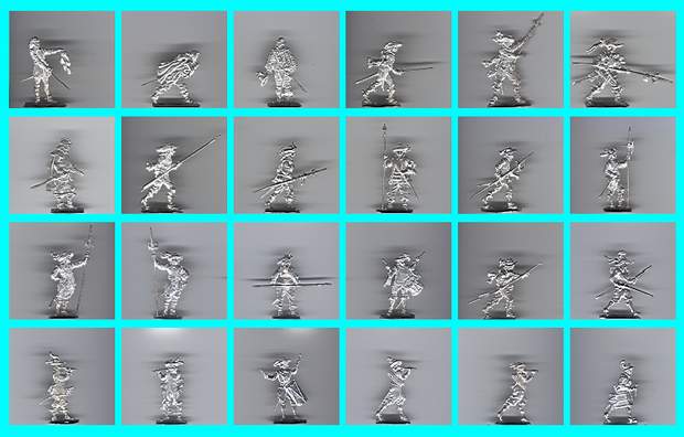 Die Figuren sind in gutem Zustand, glänzend blank, einige matt. Die Bilder geben Auskunft über die Qualität der Stücke. Größe 30mm Figuren. Es handelt sich um unterschiedliche Typen um ca. 1630. Spielleute (Trommler, Pfeifer, Dudelsack) sowie Trabanten. 1 x Wallenstein hockend. Gravur überwiegend Frank. Insgesamt sind es 67 Figuren, davon 42 verschiedene!