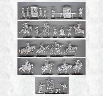 Die Figuren sind in ausgezeichnetem Zustand, glänzend blank. Die Bilder geben Auskunft über die bekannt hohe Qualität der Stücke. Größe 30mm Figuren. Bei den Reiterfiguren ist die tatsächliche Höhe ca. 40 mm. Die Seriennummern aller angebotenen Figuren dienen bei den Abbildungen als Bildunterschrift. Insgesamt sind es 22 Figuren!